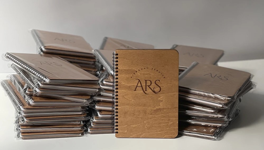 Серед бізнес-подарунків особливе місце займають дерев’яні блокноти з гравіюванням. Їхня унікальність у тому, що кожен блокнот відрізняється фактурою дерева, а персоналізоване гравіювання робить виріб справжнім аксесуаром у діловому стилі. Блокноти з дерев’яною обкладинкою подобаються як чоловікам, так і жінкам, підходять для записів, планування або творчих нотаток. Це подарунок, який гарантовано буде використовуватися, а отже — нагадуватиме про ваш бренд.