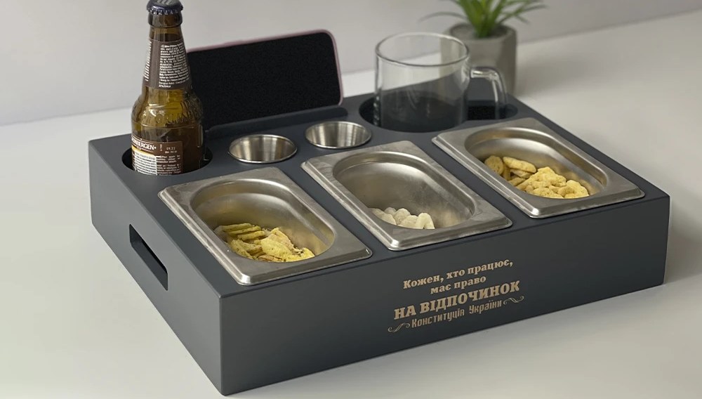 Для оригінальних корпоративних сюрпризів чудово підійдуть пивні бокси з гравіюванням. Це дерев’яні органайзери, у які можна додати пляшки пива, снеки або інші частування. Такий подарунок особливо актуальний для святкових корпоративів, чоловічої частини команди або як презент партнерам. Гравіювання з логотипом робить бокс стильним, а сам подарунок — особливим та емоційним.