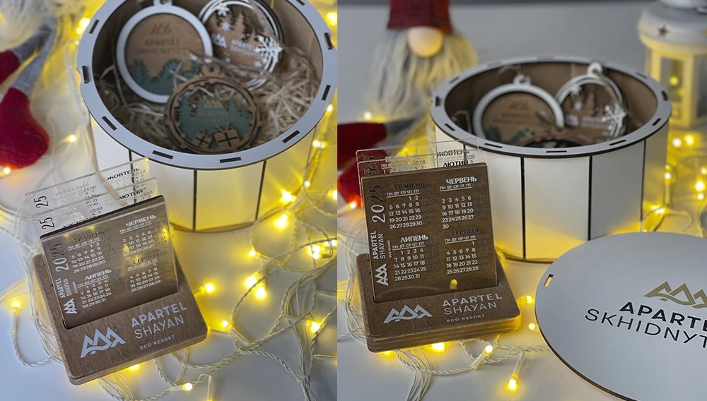 Одним із найбільш затребуваних корпоративних подарунків є настільні календарі з логотипом. Вони не просто прикрашають робочий стіл — вони постійно знаходяться у полі зору, нагадуючи про компанію кожного дня. Дерев’яні календарі виглядають солідно, вирізняються довговічністю та слугують стильним офісним аксесуаром. Логотип або слоган підсилює бренд, а лаконічний дизайн додає виробу універсальності. Такий подарунок доречний як для внутрішнього використання в колективі, так і для партнерів чи клієнтів.
