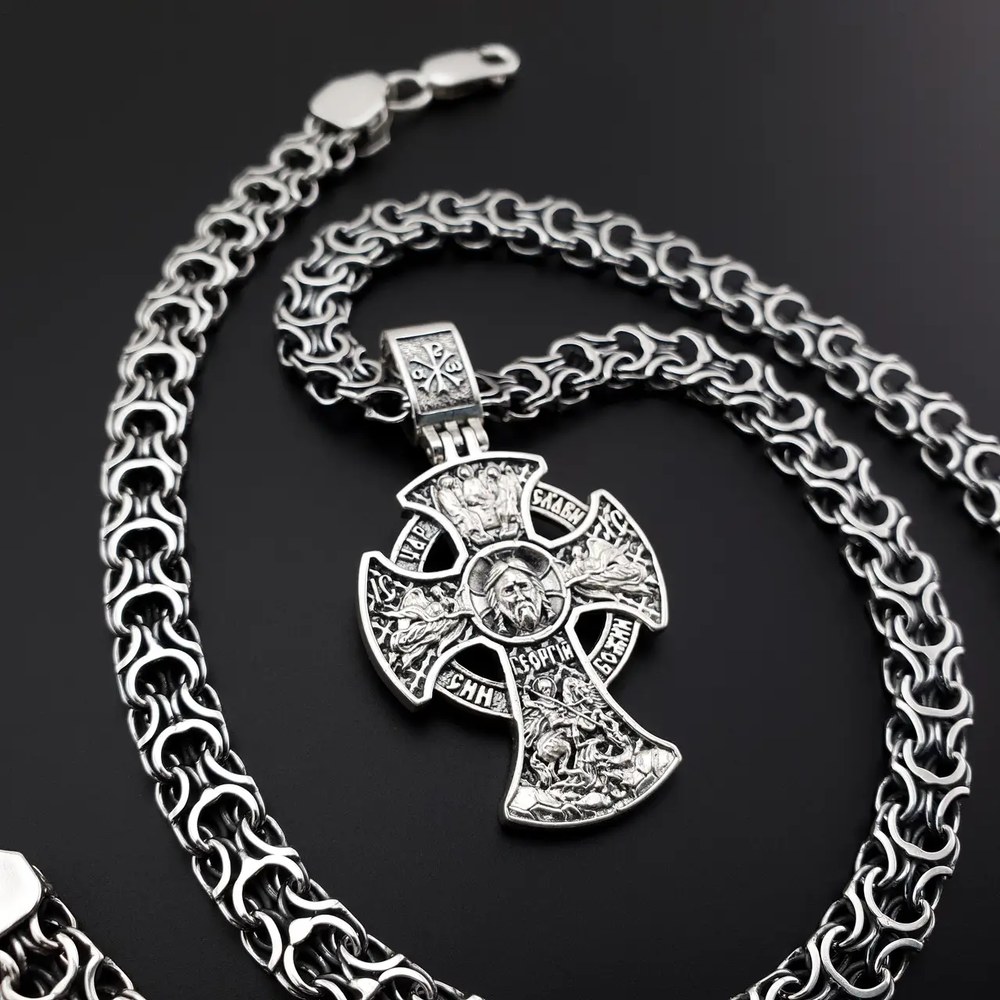 Аксесуари з масивною фактурою вдало поєднуються зі стриманими образами, класичним одягом та повсякденним стилем. Вони виглядають переконливо, додають мужності та акцентують увагу на деталях. Товсті срібні цепочки з хрестиком створюють враження сили та естетичної гармонії, залишаючись водночас комфортними для щоденного носіння.