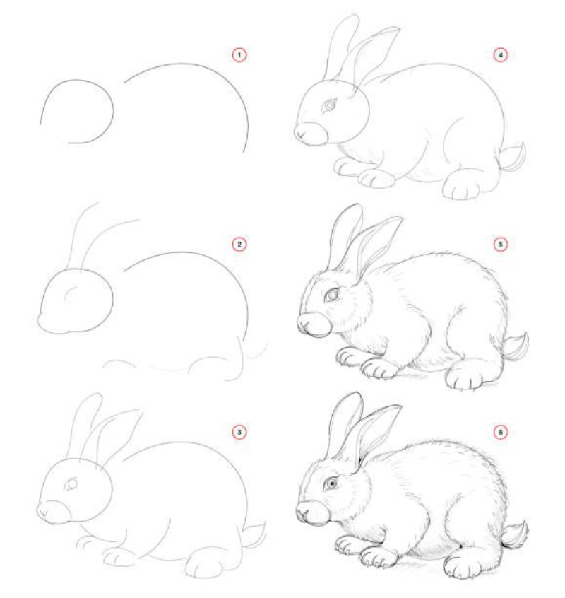 Щоб створити гарний малюнок, варто йти від простого до складного. Навіть дитина зможе зрозуміти, як намалювати кролика легко, якщо рухатися поступово.