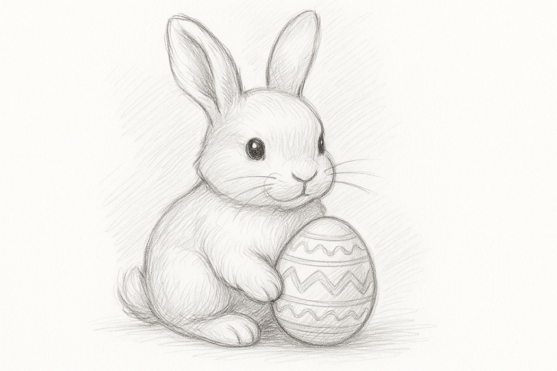Кілька деталей одразу змінюють настрій малюнка. Якщо додати в лапки моркву, кролик виглядатиме грайливим. Якщо намалювати поруч писанки чи великодній кошик, образ стане святковим.