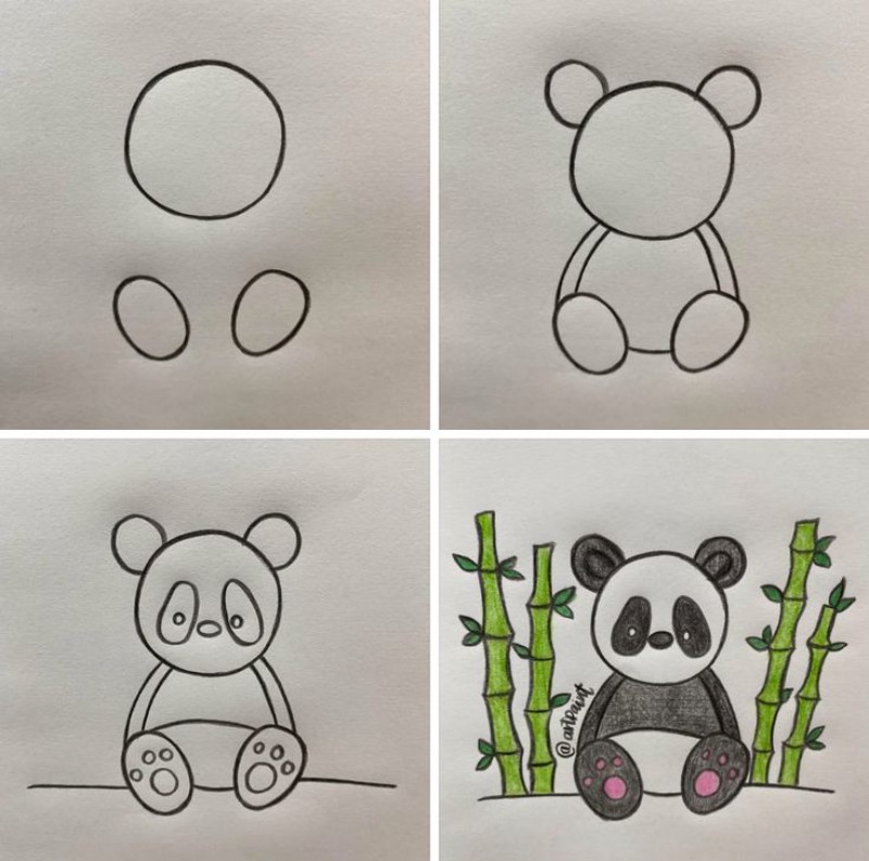 У цій статті ми розглянемо легкі малюнки панди, які зможе повторити кожен, навіть без особливих художніх навичок. Далі можна навчитись, як легко намалювати пандочку різними способами: з бамбуком, по клітинкам, із сердечком і навіть у стилі кунг-фу.